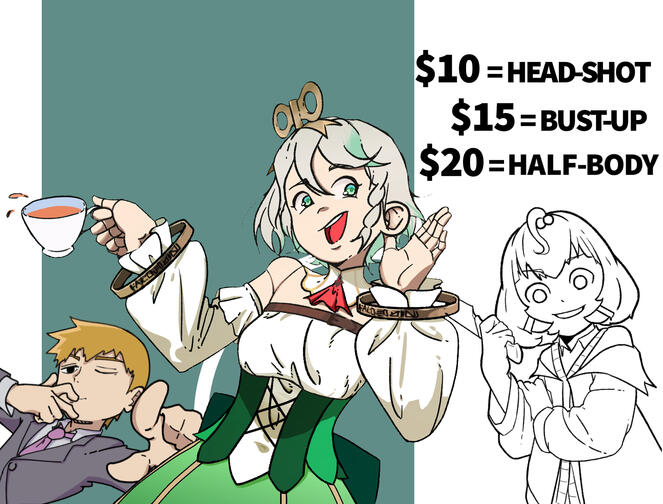 DETAILSProvide references (screenshots, reference sheets, pose references etc. anything that can help with the process)I have a right to refuse any prompt if it doesn't appeal to me or might be too inappropriate.Payment through Paypal only (USD)Payments must be made after a rough sketch has been finalizedContact me via Discord (sinjuus) or Twitter (@sinjuuus)Commissions might take a while to be completed since I am a student, please be patient with me.I retain all rights to post and use commission artworks (to upload in my galleries/ use for publicity)No refunds after the lineart phase is completedBy commissioning me, you agree to all the given terms